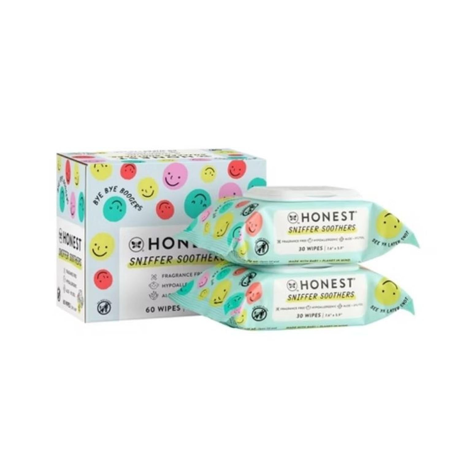Las toallitas húmedas Honest Sniffer Soothers hacen que sea aún más fácil limpiar y eliminar moquillos y mucosidad pegajosa. Formuladas con ingredientes a base de plantas, nuestras toallitas son seguras y suaves para la piel de tu bebé.